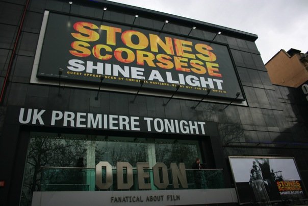 Es la Premiere de Shine a Light, filme de Martin Scorsese. El primero en bajarse de un flamante coche negro es Ronnie Wood, le siguen Charlie Watts, Keith Richards, el más aclamado, y finalmente Mick Jagger, aquello era una locura, un maravilloso infierno de locura. Martin Scorsese se ausentó debido a que actualmente rueda en Hollywood su próxima película, Shutter Island. Por la flamante alfombra seguían desfilando componentes de Oasis, Kasabian y The Klaxons y finalmente de ahí al BFI IMAX Theatre cerca del puente de Waterloo para ver los “mortales” la película, si tienes la oportunidad de verla en sistema IMAX, como fanático de los Stones y el cine, te aseguro que el placer será muchísimo mayor.