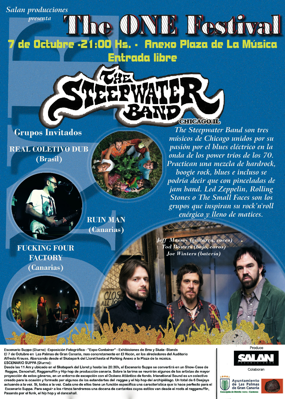 El concierto de The Steepwater Band se inscribe dentro del denominado The One Festival, que incluye también las actuaciones de Real Coletivo Dub, Ruin Man y Fucking Four Factory, quedando el cartel como sigue: