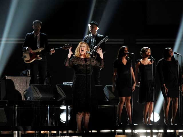 Lady Antebellum hacen entrega de un quinto Grammy a Adele por la mejor grabación del año “Rolling in the Deep”. Los amantes de las quinielas apuntan que Foo Fighters también tiene cinco en ese momento.