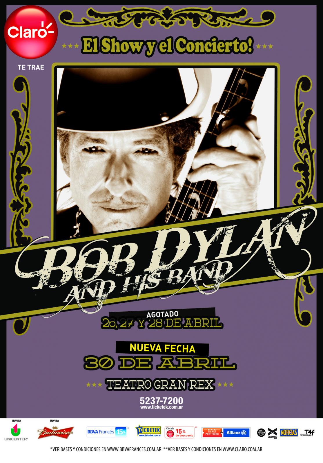 Bob Dylan comenzará una gira por sur América el próximo 15 de abril, Brasil, Argentina, Chile y terminará en Centroamérica, Heredia, Costa Rica el 5 de mayo.
