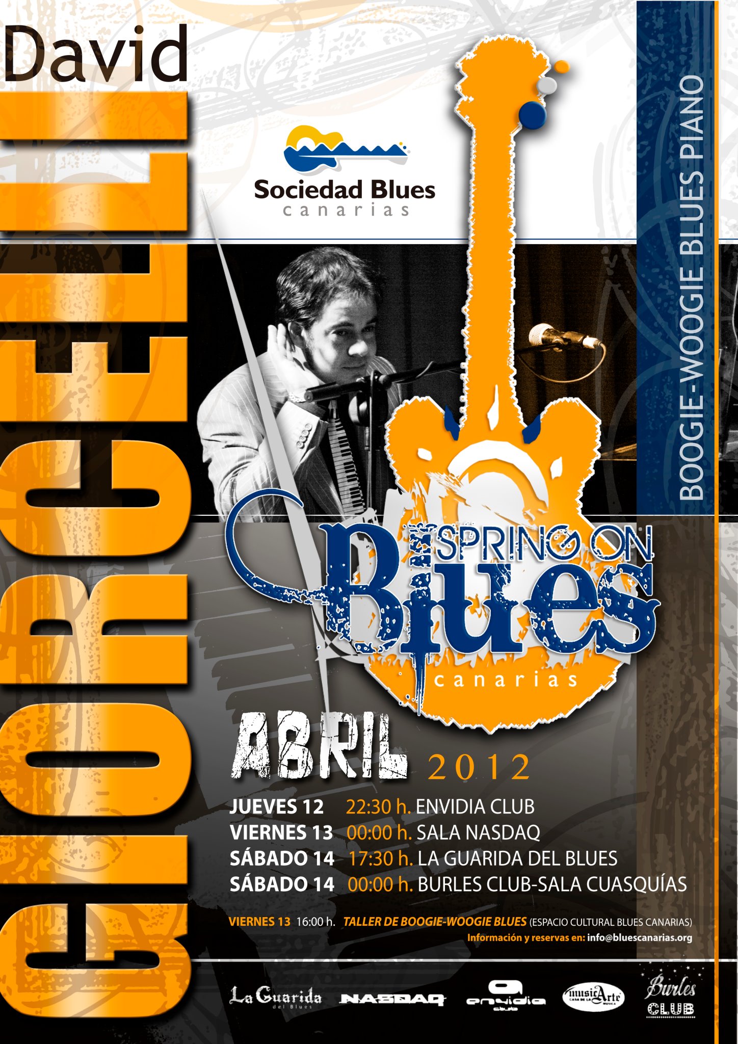 Esta semana, en Las Palmas de Gran Canaria, tendremos la oportunidad de disfrutar de uno de los pianistas españoles mas relevantes en la escena del Blues, David Giorcelli; según muchos, la mano izquierda más potente y rápida del país, cuando de Blues y Woogie Boogie hablamos.