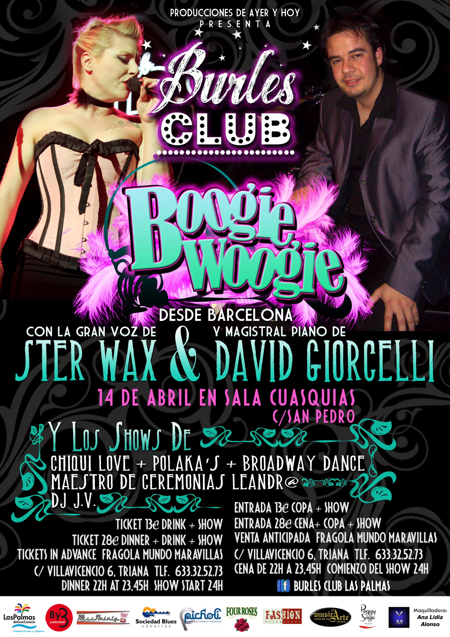 Entrando ya en materia, Burles Club nos propone para el próximo 14 de abril “Boogie Woogie”, su nuevo espectáculo, totalmente renovado, contando esta vez con dos piedras preciosas llegadas desde Barcelona para la ocasión y que podremos disfrutar en Las Palmas de GC durante el fin de semana. Se trata de Ster Wax y David Giorcelli.
