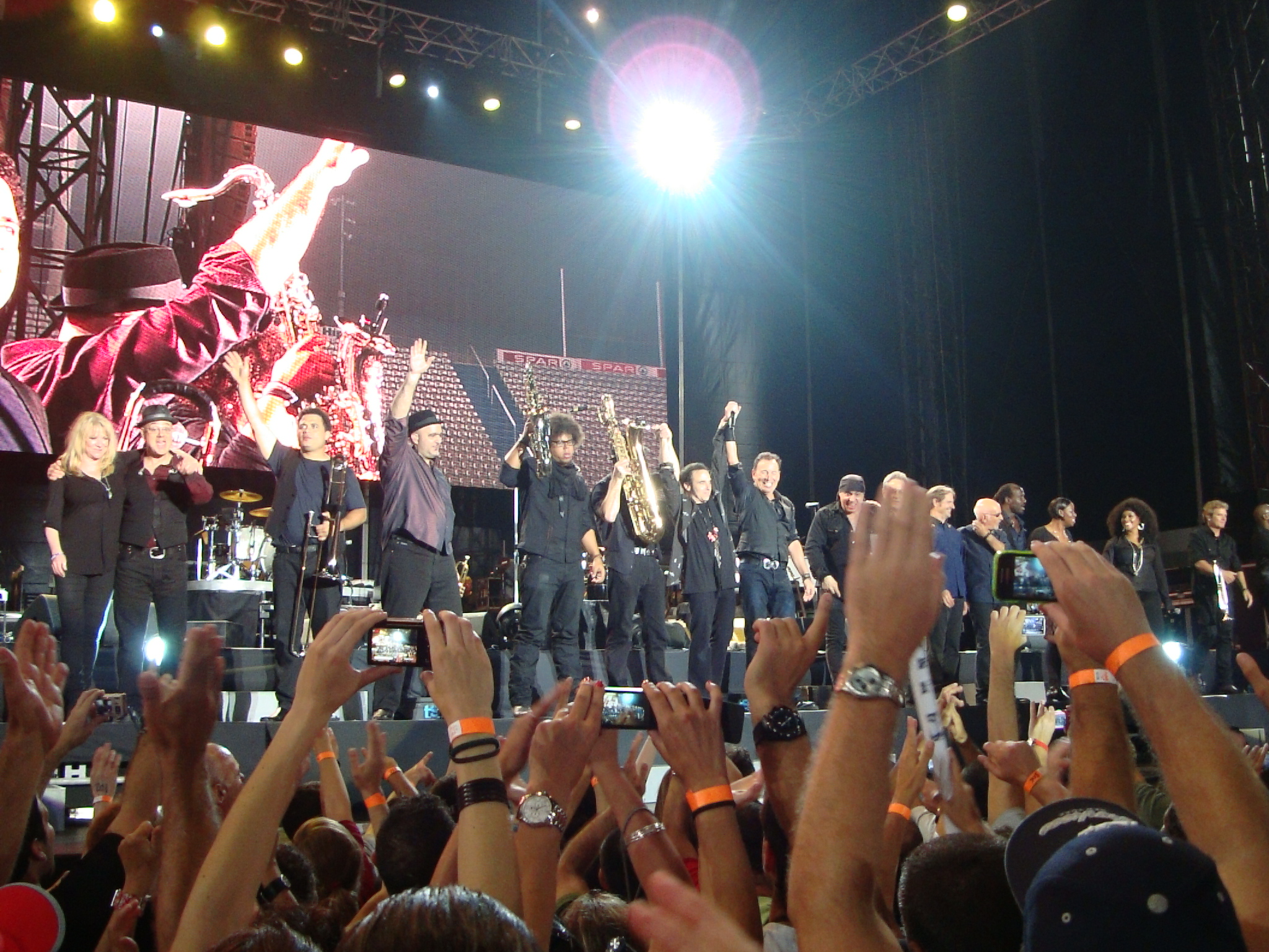 A medida que avanzaba el concierto me daba la sensación que efectivamente habían venido las 33 mil personas necesarias para salvar las cuentas y con ellas, pensaba yo, el Rock Coast. Nada más comenzar el concierto se hizo evidente que nuestra desconfianza hacia el público canario era compartida por la banda de Springsteen formada por otros 15 músicos, 16 con Michelle Moore en los temas Soul “el corazón del Rock’n’Roll” como dijo Bruce, de “Apollo Medley” y en la final “10th Avenue Freeze-Out“. Y el setlist formado por las más conocidas canciones, o si prefieres “grandes éxitos”, lo que además de evidente fue confirmado por Stevie Van Zandt a un buen amigo de Dirty Rock en el almuerzo de hoy en Hard Rock Café de Barcelona, también apunta en esa dirección.