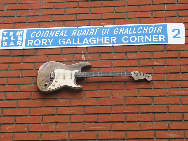 Recuerdo que lo primero que quería visitar en Irlanda hace unos años era la esquina de Gallagher, Rory Gallagher Corner en Temple Bar con la réplica de la Fender Stratocaster de bronce, por cierto Fender le rinde tributo con un modelo suyo basado en su original, muy valorado por músicos y coleccionistas.