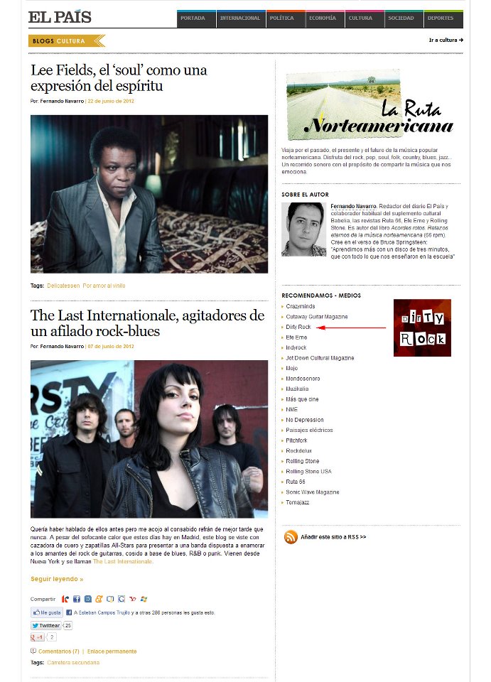 Fernando Navarro, experto en música de raíces, recomienda Dirty Rock en su blog de cultura de El País, “La Ruta Norteamericana”.