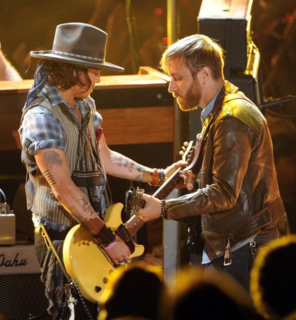 Johnny Depp chose to accept the MTV Generation Award at tonight’s Movie Awards by playing two songs with the Black Keys “Gold on the Ceiling” and “Lonely Boy” from their new album El Camino.