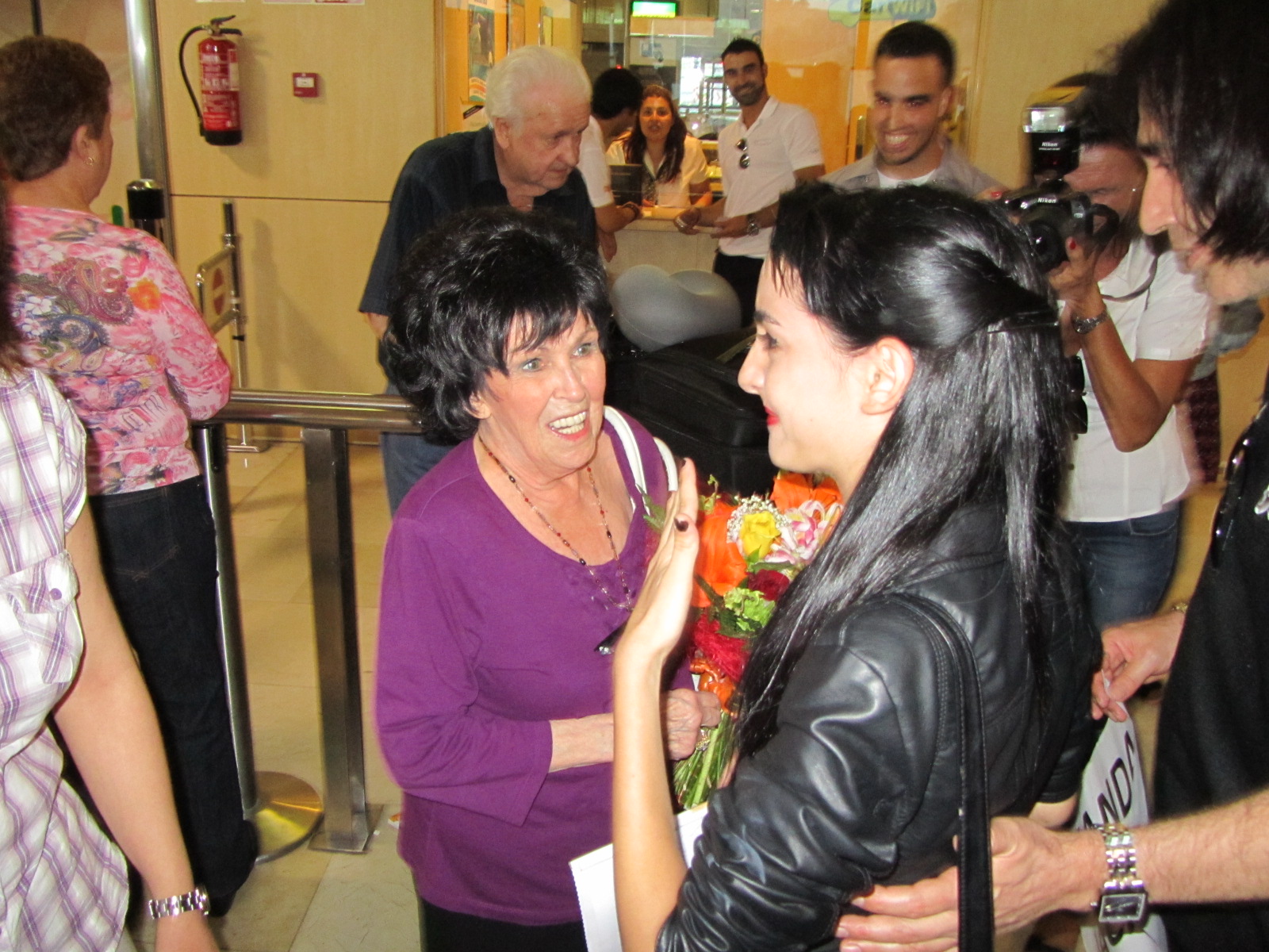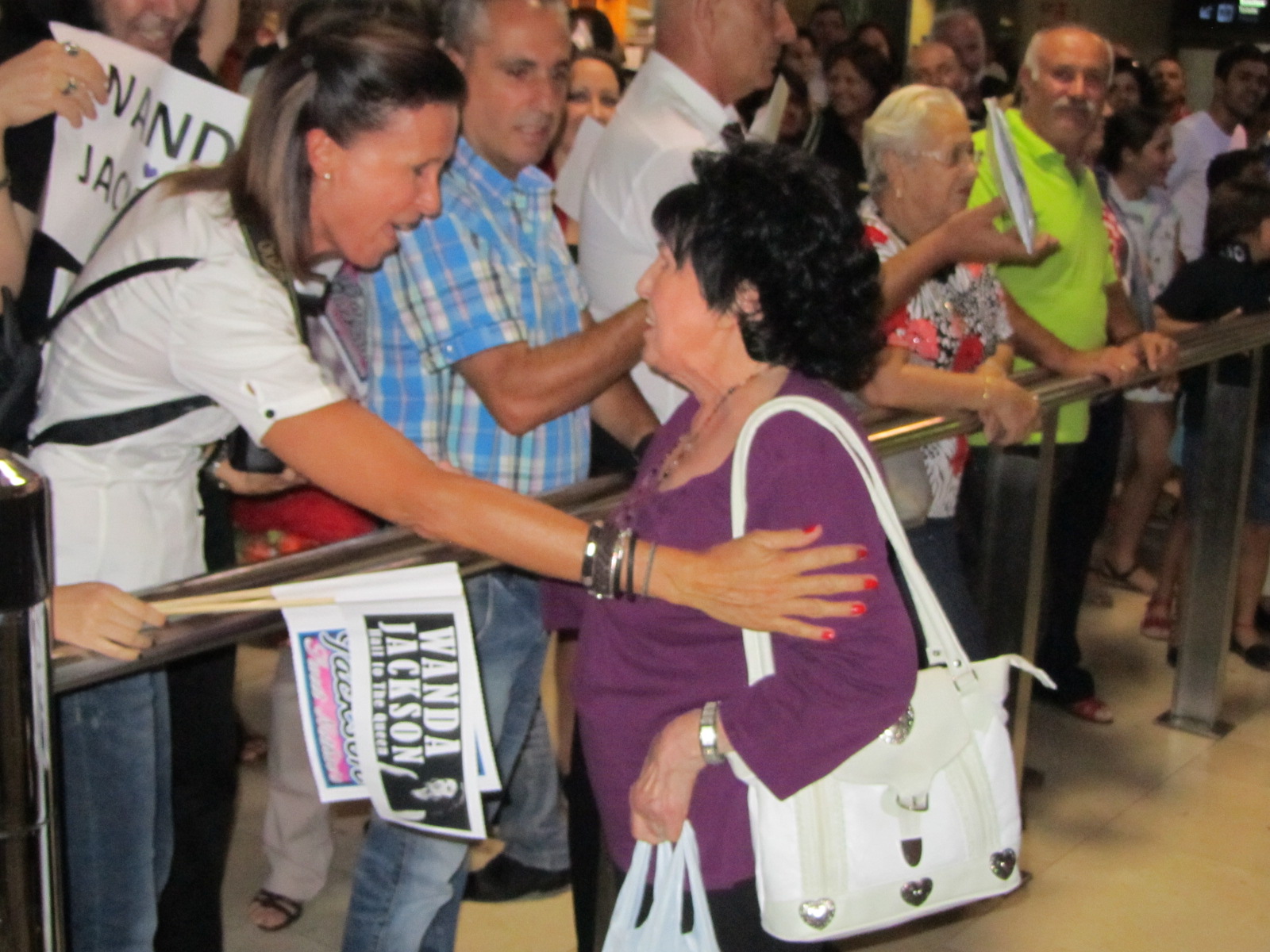 Antonio González y su esposa Mary Carmen liderando Amigos de Elvis de Tenerife, y Vulcan Rockers Tenerife capitaneado por Manolo, Montse, Héctor, Rodrigo, Arturo, Manu, Alexandra, Faina y un nutrido grupo de amantes del buen Rock and Roll se daban cita en el aeropuerto de los Rodeos a las cinco menos diez de la tarde para recibir a Wanda Jackson.
