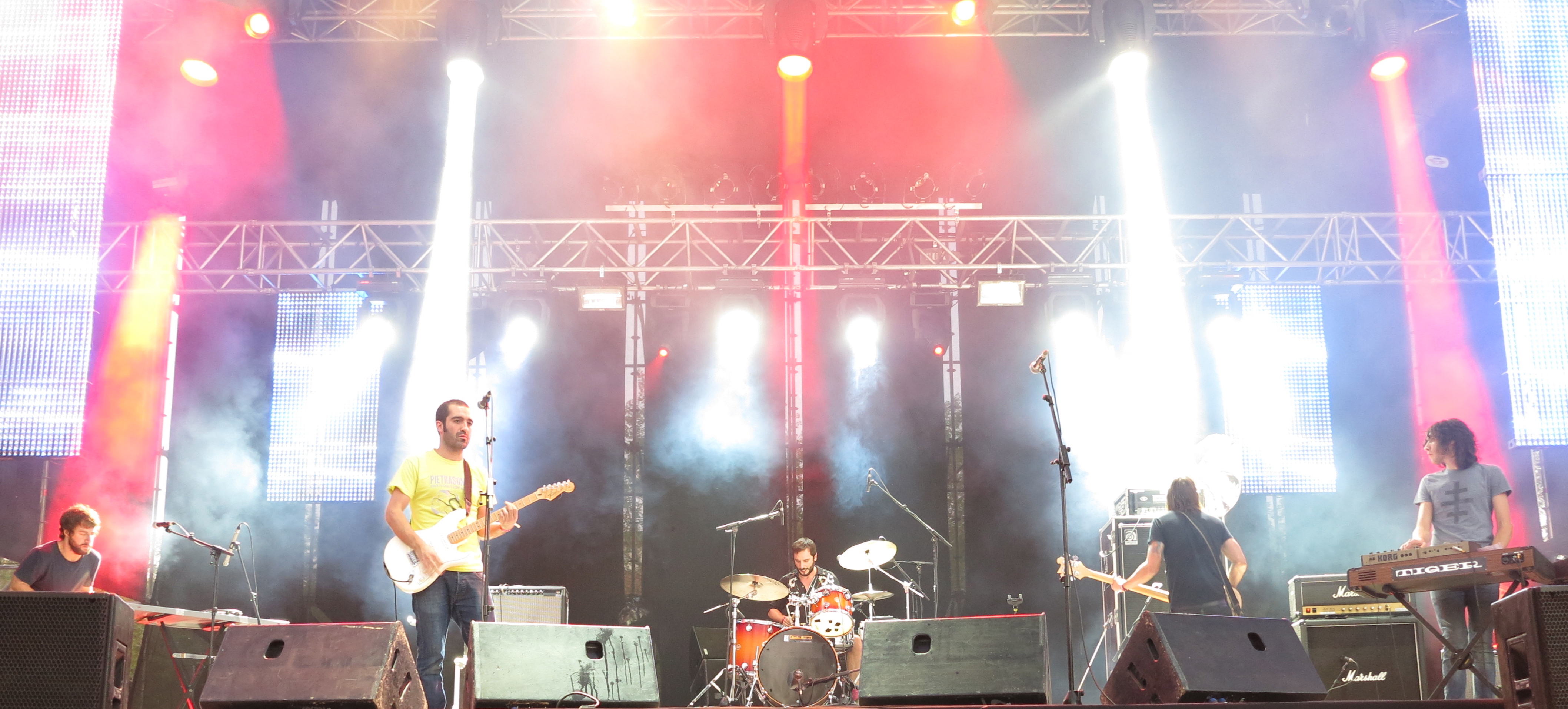 Y percibimos otro desaguisado en las pantallas gigantes situadas a ambos lados del escenario, un retardo entre la imagen y el sonido, cuando el frontman de Supersubmarina movía los labios para pronuncia algo, ese algo ya lo habíamos oído. Y ya no se corrigió. Inexplicable que en un festival que pretende reunir a decenas de miles de personas no se prevean estos detalles (de difícil arreglo in situ, cuando lo que va por detrás es la imagen) que en este caso hacían imposible seguir el concierto por dichas pantallas.