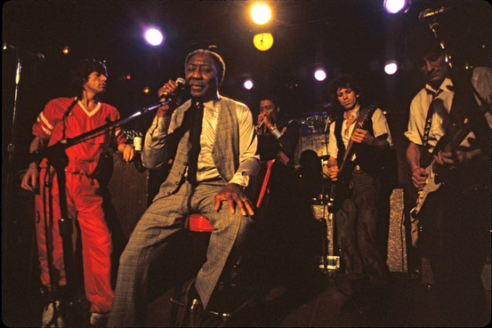 También en la mesa se econtraban el malogrado Ian Stewart y el ex FacesIan Mclagan. Las botellas de Jack Daniels empiezan a volar en una mesa justo delante del escenario, como no la troupe The Rolling Stones bebiendo y fumando sin parar, Muddy Waters empieza a bromear con ellos mientras seguía cantando “Baby Please Don’t Go” acerca de beber alcohol y que se tomaran su tiempo, de repetente, aquel genio de 68 años, Muddy Waters gritaba, ¡Mick Jagger, Mick Jagger sube aquí arriba!, dos camareros seguían trayendo más vasos y hielo a la mesa.