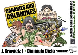 “Canaries and Goldmines” ese proyecto conjunto presentan sus últimos trabajos “Retroalimentación en Portugal” (LFSH, 2012) de Diminuto cielo y “Shapes”, próximo EP de J. Krawietz que verá la luz el próximo 2013, trabajos de dos sellos discográficos como son La Fábrica de Sonidos Hipnóticos asentada en Gran Canaria y De Caucho Discos en Tenerife.