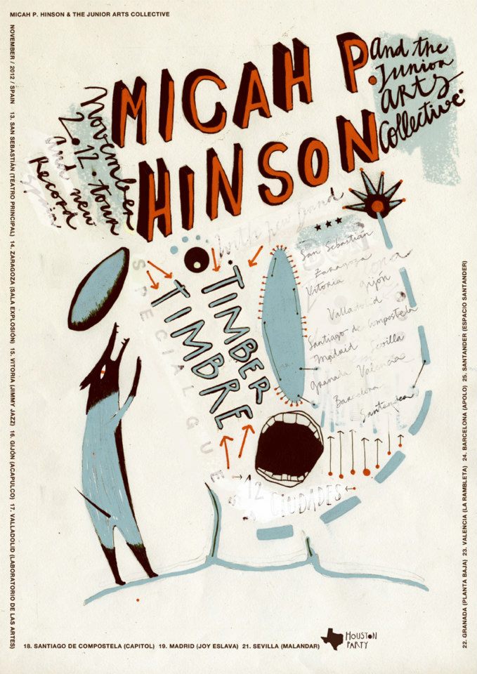 Micah P. Hinson el nuevo hillbilly, comienza hoy su gira en España con su banda “Micah P. Hinson And The Junior Arts Collective”, donde se esconde el trío canadiense Timber Timbre (Mika Posen, Simon Trottier y Kirk Taylor) de Spooky Folk, en el que su sonido lo describen como una estética enraizada en pantanos y Blues irregulares en un universo alternativo, creando una atmósfera cinematográfica sobrecogedora.
