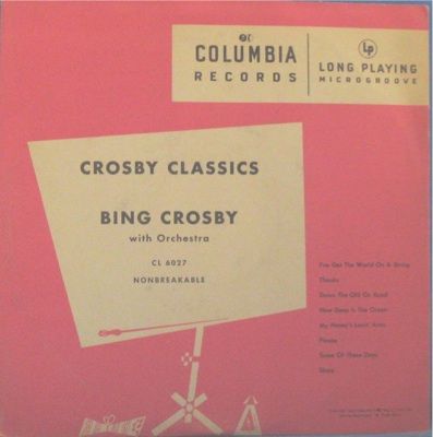 Los primeros discos de de música popular en vinilo de 33 r.p.m. y de 12 pulgadas estaban relacionados con noticias concernientes a la segunda guerra mundial, deportes, o música clásica, y con el logo de Columbia Long Playing Microgroove,  y no fue hasta 1948 la primera vez que aparecian los dos primeros discos de música popular con Frank Sinatra en “The Voice of Frank Sinatra” (CL-6001) con canciones como “You Go To My Head”, “Someone To Watch Over Me”, “These Foolish Things”, “Why Shouldn’t I”, “I Don’t Know Why”, “Try A Little Tenderness”, “Ghost Of A Chance”, y “Paradise”,  o Bing Crosby en otra portada de un LP de 33 r.p.m. y de 16 pulgadas titulado “Crosby Classics” (Columbia CL-6027) y distribuido por Decca Records con canciones como “I’ve Got the World on a String,” “Thanks,” “Down the Old Ox Road,” “How Deep Is the Ocean,” “My Honey’s Lovin’ Arms,” “Please,” “Some of These Days” o “Shine.”