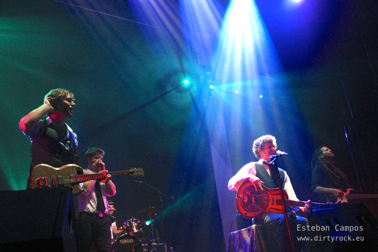 | I think this new record is much more grown up. We really tried to step out of our comfort zones, and try new things. Lyrically, I tried to tell different stories than I ever have on our previous songs. It’s important to always keep growing and progressing. We realized that we couldn’t do another “Bird Called Angola” or “Pray On”. We had to grow up, and I think we did. We explored the idea of writing songs that were a little bit quieter, like the song Out to Sea, or River. We bought in horns, and background vocals. We just stretched out, and tried to keep everything interesting. We brought in more New Orleans influences with this record. We also tried to infuse some of our folk influences. I think my dobro come through more as an acoustic instrument, than it ever has. We just wanted to find that balance of Rock’n’Roll and also the folk or roots sound too. | Creo que “Death Letter of Jubilee”, es un disco muchísimo más maduro que los anteriores, hemos intentado salir de esas situaciones más cómodas e intentar hacer cosas nuevas, ser más creativos, dar un paso más. Compositivamente, hemos intentado contar muchas más historias de diferente índole que en nuestras canciones anteriores. Es importante seguir creciendo y progresando. Nos dimos cuenta que no podríamos hacer de nuevo un nuevo “Bird Called Angola” o “Pray On”. Teníamos que crecer, y creo que lo hemos logrado. Analizamos la idea de componer canciones que fueran más tranquilas como en “Out to Sea” o “River”, ahí aparecen instrumentos de viento y los coros, estábamos tan ansiosos del resultado que todo fue siendo cada vez más interesante. Traemos más influencias desde Nueva Orleans en este nuevo disco. Creo que cuando todo mi dobro es más acústica que nunca con el nuevo disco. Queríamos ese equilibrio de sonidos en el Rock’n’Roll y también en cuanto al Folk y al sonido de raíces. |