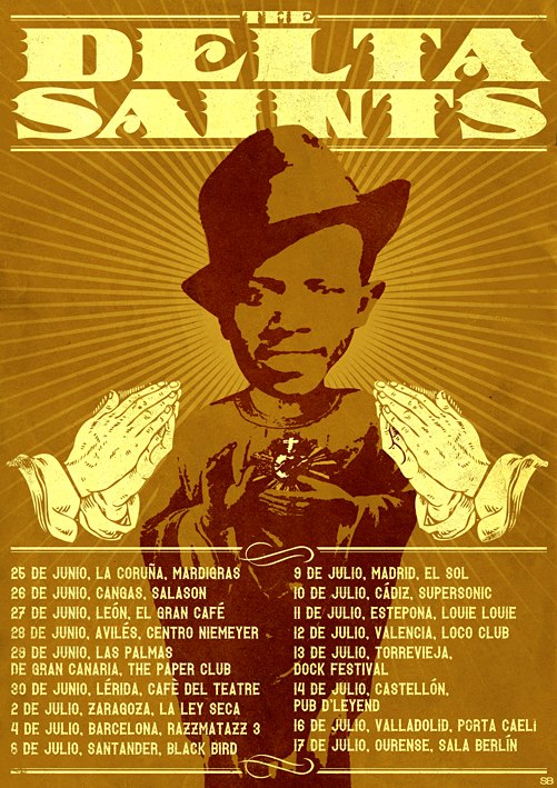 Para conocer las fechas The Delta Saints en España y su gira española que comienza el 25 de junio en la Coruña, en la sala Mardi Gras, para recorrer todo el territorio nacional hasta el 18 de julio en el Kafe Antzokia, Bilbao, pincha en éste párrafo.
