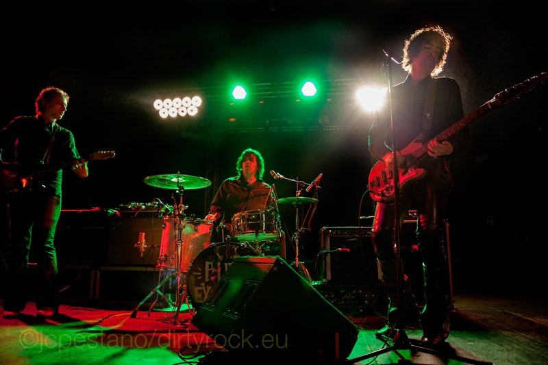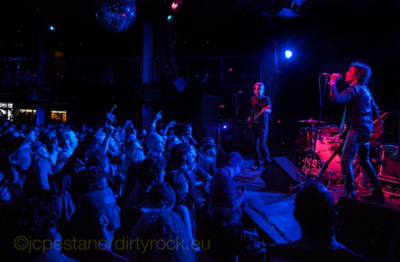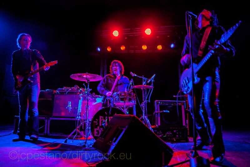 The Jon Spencer Blues Explosion sonaron en Madrid a esos dos maravillosos discos “Extra Width” (1993) o “Acme”(1998), continuos fogonazos uno detrás de otro, realmente viscerales y salvajes, hasta que el público se fue soltando y terminó en la parte delantera de la sala junto al escenario a sudar y dejarse la piel entre empujones y saltos de satisfacción.