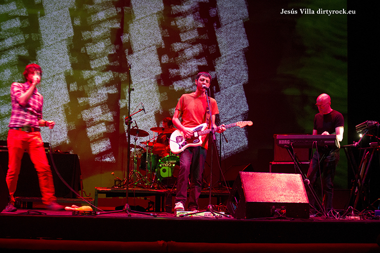 Tras una progresiva, original (y no sé si fortuita) transición y entrada en escena, el siguiente grupo en actuar fue Cabeza Borradora con Ruymán García (guitarras), Felu (bajo), Damián Padrón (batería), Jomi (teclados, programación) y Carlos Robles (voz). Fieles a su estilo, rotundo a veces y sutil otras, rememorando a Stone Roses o Happy Mondays en ocasiones, y con un casi insolente divismo del vocalista. Una actuación completa y apropiada en la que la base rítmica, secuencias, bajo y batería, fueron a mi modo de entender lo más destacable.