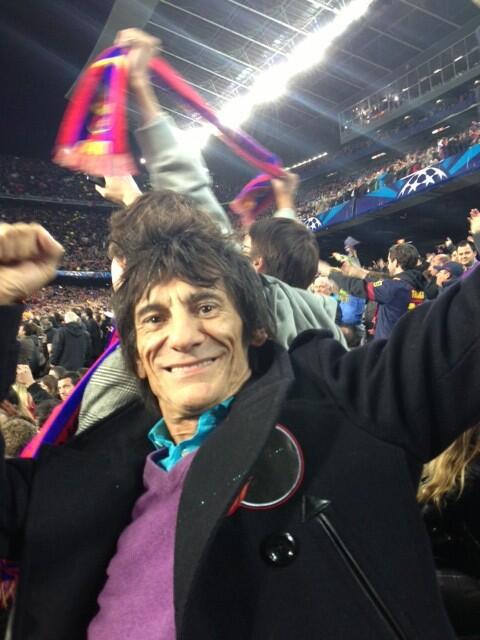 Ronnie Wood fan del FC Barcelona anoche contra el AC Milan