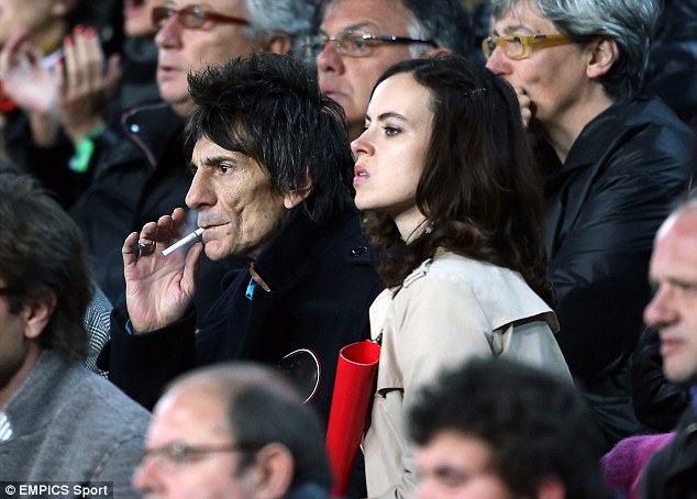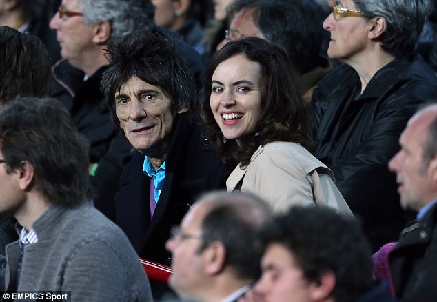 Ronnie Wood, guitarrista de The Rolling Stones, junto a su reciente esposa Sally Humphreys, 31 años más jóven que Ronnie, disfrutaron en las gradas del magnífico partido de fútbol, como se puede apreciar en las siguientes fotos tomadas por un medio de comunicación británico, el Daily Mail.
