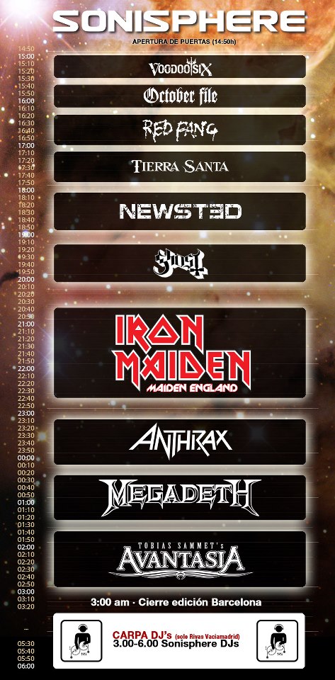 El cartel lo completan otros grupos como AVANTASIA, GHOST, TIERRA SANTA, OCTOBER FILE, RED FANG y VOODOO SIX.
