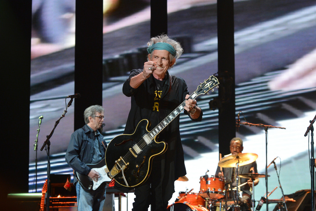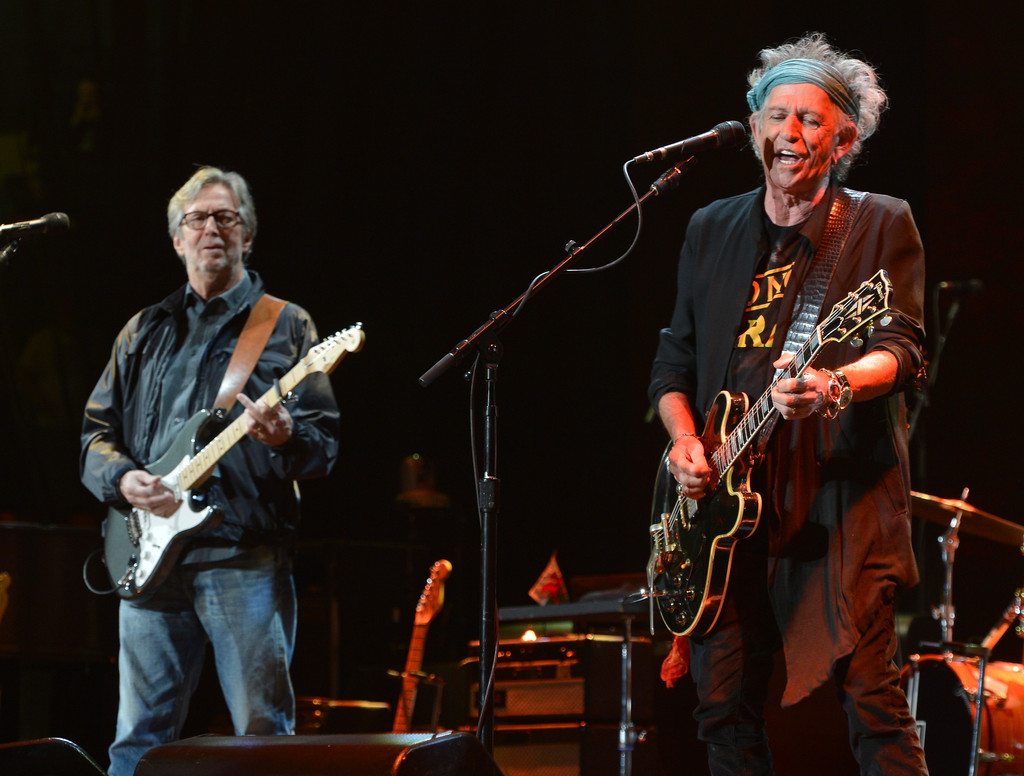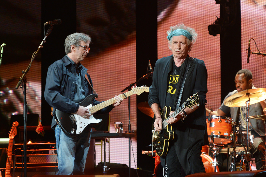 Keith Richards junto a Eric Clapton en el Crossroads Guitar Festival 2013