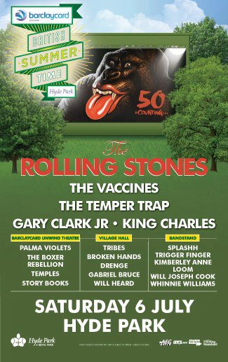 Las entradas del concierto de The Rolling Stones en Londres, festival British Summer Time Hyde Park, del 6 de julio se ponen a la venta en pre-venta a partir de hoy mismo y el viernes 5 de abril para el público en general (95-399 £, 112-471 euros).