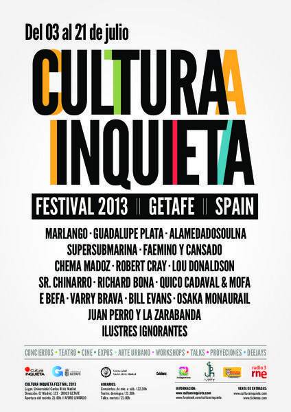 Cultura Inquieta Festival 2013 Getafe, Robert Cray, Bill Evans, Guadalupe Plata, etc