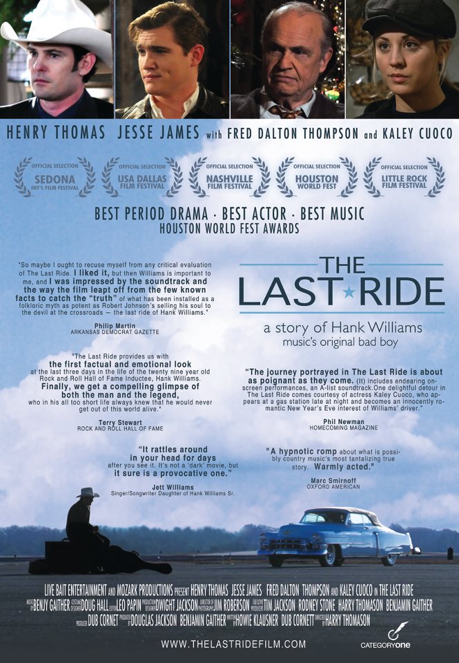 “The Last Ride”, la película que narra los tres últimos días de vida del genial canante de Country y Honky Tonk, Hank Williams, que murió con apenas veintinueve años de edad en el asiento trasero de su Cadillac de color celeste del 51, un uno de enero de 1953 en una vieja carretera de Oak Hill en West Virginia, será publicada en DVD el próximo 6 de junio.