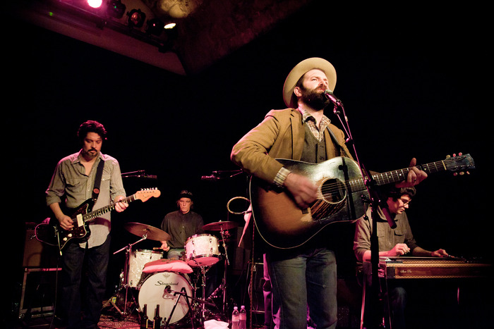 Jeffrey Foucault en sus conciertos en solitario se hace acompañar de los mejores músicos al igual que en su último y maravilloso disco, uno de los mejores de la década me atrevo a decir, su “Horse Latitudes” grabado en sólo tres días con músicos de la talla de Eric Heywood (Pretenders, Ray LaMontagne) al pedal steel, Billy Conway (Morphine, Cold Satellite) a la batería, Jennifer Condos (Ray LaMontagne, Sam Phillips) al bajo, y Van Dyke Parks (Lowell George, Randy Newman, Ry Cooder) a los teclados.