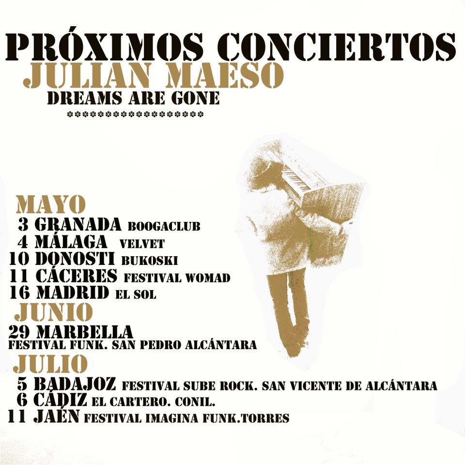 Entrevistamos a Julián Maeso, que amablemente respondió a nuestras preguntas, y desde está página agradecerle su tiempo y dedicación para nuestros lectores, ahora que se encuentra de gira presentando su disco “Dreams are Gone”.