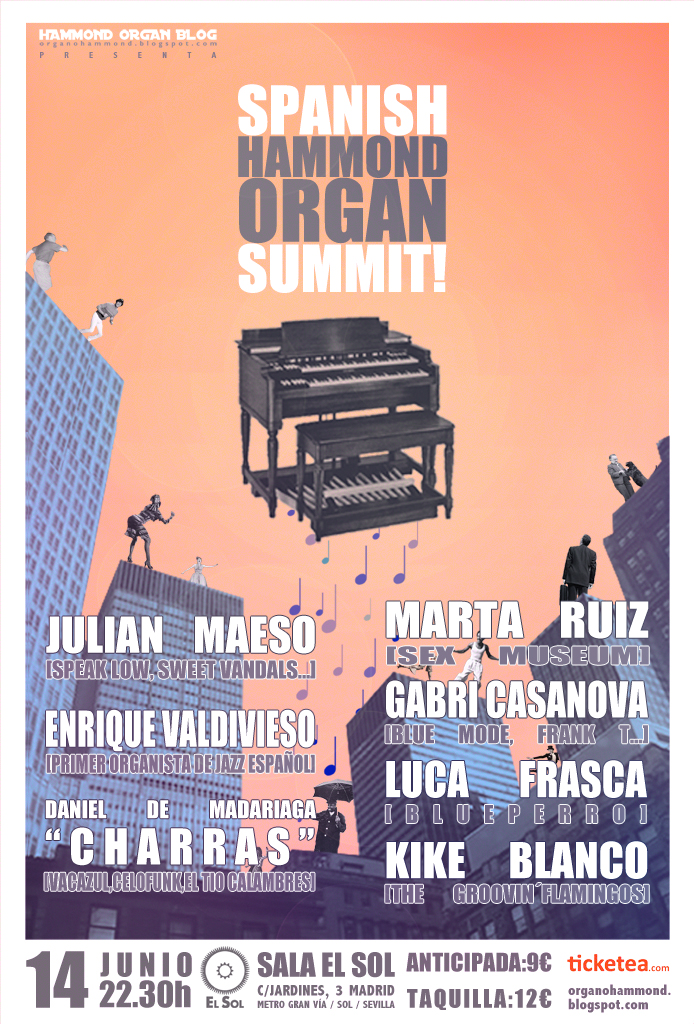 Spanish Hammond Organ Summit! es el concierto organizado por el blog Hammond Organ, en el que reunirá encima del escenario de la Sala El Sol el próximo 14 de junio a los mejores y más representativos organistas nacionales como Julián Maeso, Marta Ruiz, Enrique Valdivieso, Daniel de Madariaga “Charras”, Gabri Casanova, Luca Frasca y Kike Blanco, con una banda base formada por Antonio Pax a la batería y Carlos Murillo a la guitarra.