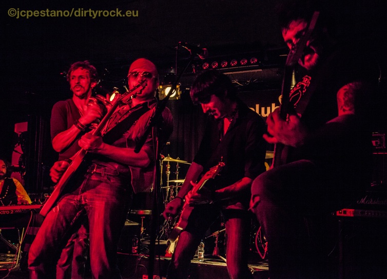 Babylon Rockets, valencianos, abrieron la noche con su demoledor Rock & Roll lleno de tonalidades y de un directo que llega a rozarte la médula con temas de sus dos discos publicados hasta el momento “Conspiracy” (2008) y “Electric Fuel” (2011), del sexteto compuesto por Dany, Eloy, Rafa, Ivan Hot, Kike y Kiko “Suzuki”.