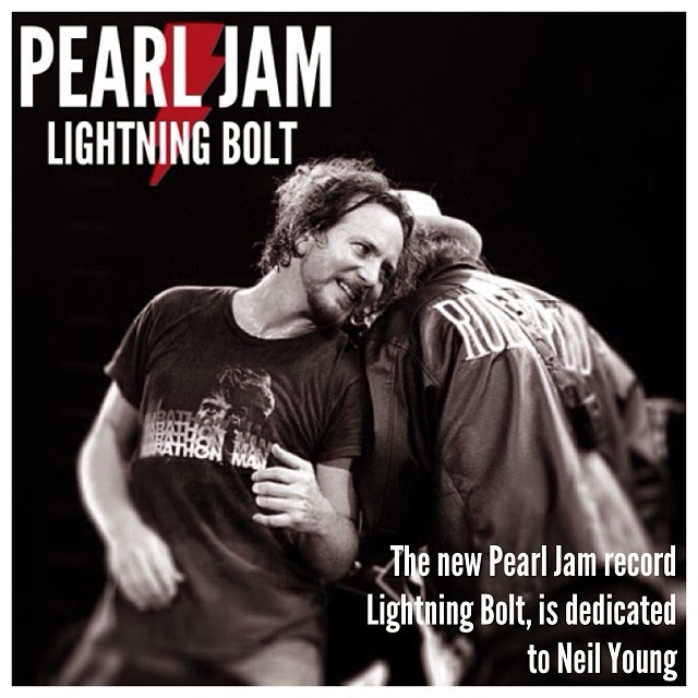 Neil Young también es homenajeado por Pearl Jam en su último disco “Lightning Bolt” publicado hace unos días con una dedicatoria en el libreto del disco con una foto y texto a Neil Young: “El nuevo disco de Pearl Jam Lightning Bolt” está dedicado a Neil Young”.