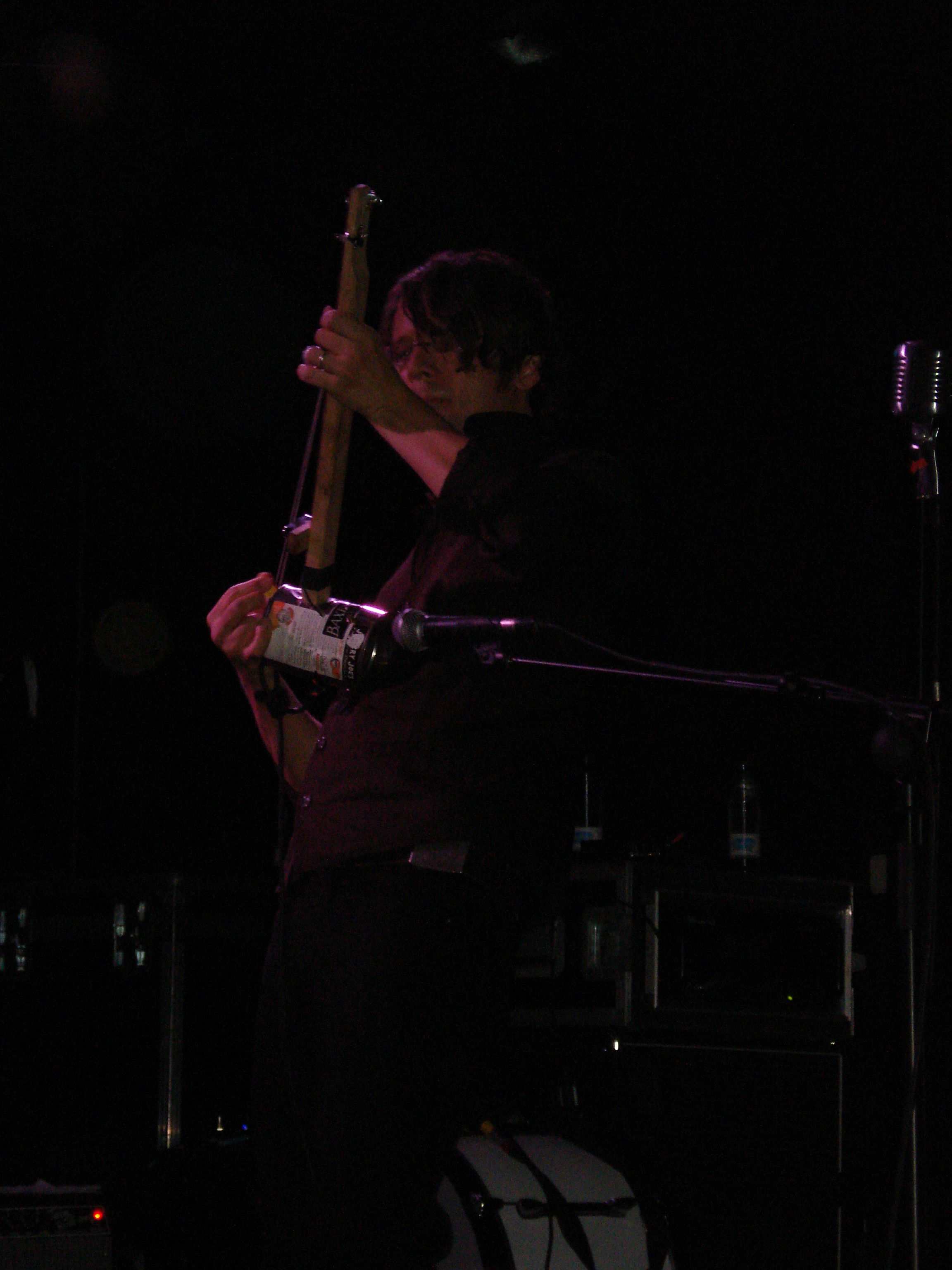 En esta ocasión no sacó el “lowebow”, peculiar instrumento de cuerda cuyo resonador es una caja de puros, lo que sí saco fue algo similar con una lata.