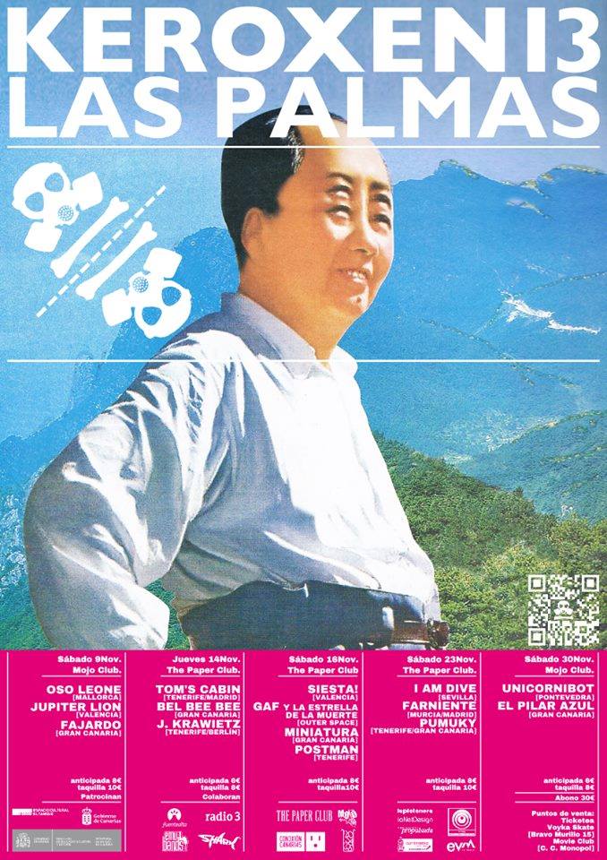 Artistas locales como Cabeza Borradora, Tom’s Cabin (15 de noviembre), Brutalizzed Kids, DJ El Killo (29 de noviembre), Pachumba (6 de diciembre), Pumuky, El Pilar Azul, Postman/Jorganes, Javier Krawietz y Perro Verde (7 de diciembre) son algunos de músicos que completarán el apartado musical del festival Keroxen13.