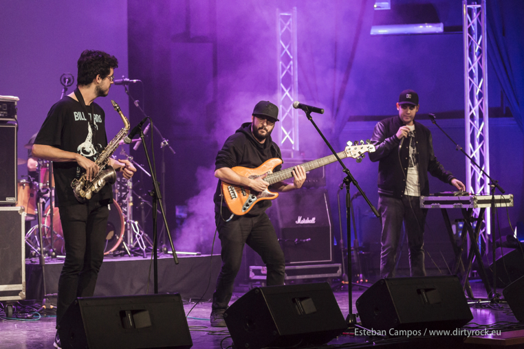 Said Muti: Con un reciente Ep en el mercado “Corazones y Ceniceros”, fueron los que abrieron el concurso. Y lo hicieron sabiendo afrontar el problema al que hacíamos alusión anteriormente, la celebración del concurso en días laborables, un lunes y un martes. A su baterista Yeray Rodríguez le fue imposible acudir a la cita por motivos laborales y fue sustituido, de forma brillante por José de la Cruz (Josiño), baterista de Flat & Bass, y que actuaría unos minutos mas tarde con su banda. Sólo unos pocos ensayos fueron necesarios para que le imprimiera al Blues Rock de Muti toda la fuerza que requiere. Sus 25 minutos fueron excepcionales, desde un principio todo empezó a fluir con con fuerza y rabia. Muti enchufadísimo, en diálogo continuo con el público, Barroso haciendo gemir a las cuerdas de su guitarra y Bonilla y de la Cruz marcando los tempos y empujando de principio a fin cada uno de los temas.