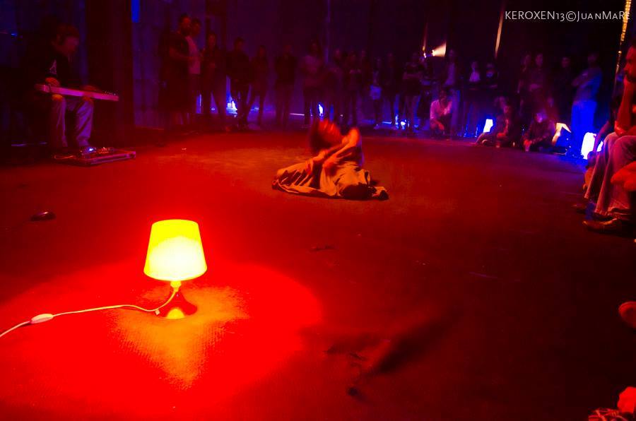 La tarde evolucionaba al ritmo de  DIEGO HERNÁNDEZ y LAURA MARRERO con su propuesta de arte escénica que combinaba música y danza. Diego compuso en directo, con su steel guitar, atmósferas sugestivas para acompañar los voluptuosos pasos de danza contemporánea de Laura quien se erotizaba y nos erotizaba mientras se expandía por el suelo del tanque. Fue un momento libre y sin ataduras en el que dejamos volar la imaginación. “Lo que todos siempre queremos hacer y nunca hacemos” en palabras del demiurgo del Keroxen, Néstor Torrens. Muy sugerente.
