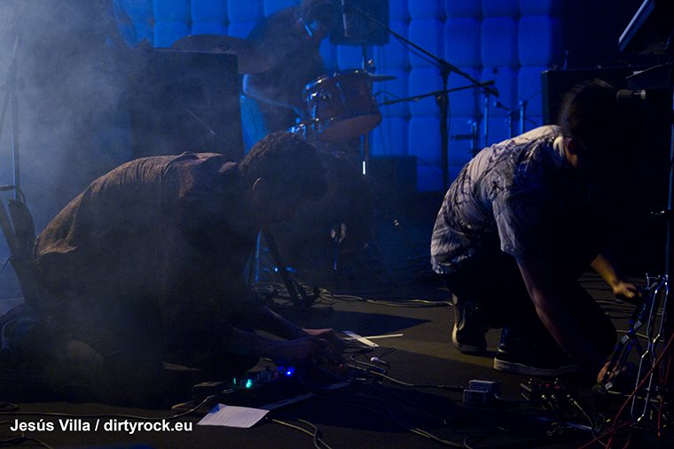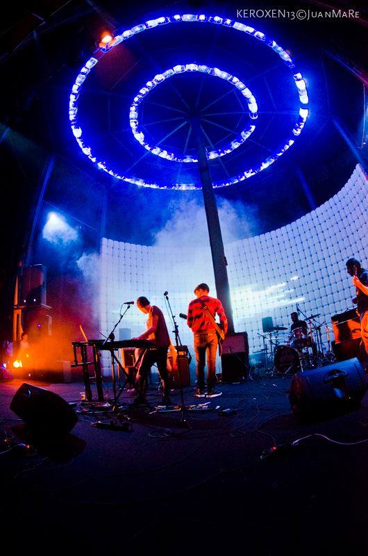 Continuaron con serios problemas de sonido lo cual desató una par de “ánimos” de los acólitos. Fue la típica actuación en la que quizás sobra la letra, no porque no nos interese, si no porque los sonidos que la banda es capaz de componer, sin duda de color azul nostálgico, son lo suficientemente potentes; tanto que pueden banalizarse con unas letras que no terminan de encajar armónicamente, o disarmónicamente pero buscadas, con el resto de la composición.  La actuación se completa cuando sale Jaír de Pumuky a dialogar con el amplificador y el vocalista al teclado cierra los ojos, a partir de ahí todo fluyó. Superaron los problemas con elegancia y nos arrastraron con ellos en busca del pilar perdido que da nombre a la banda.