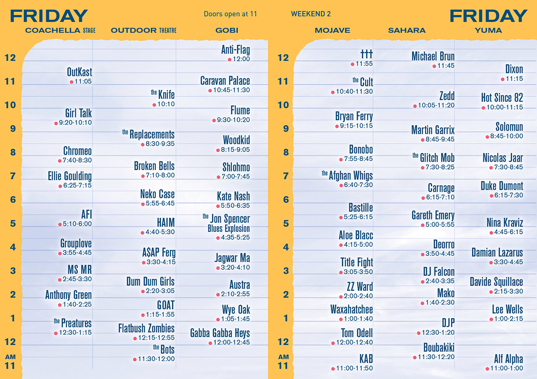 Horarios del festival Coachella viernes 18, sábado 19 y domingo 20 de abril 2014.