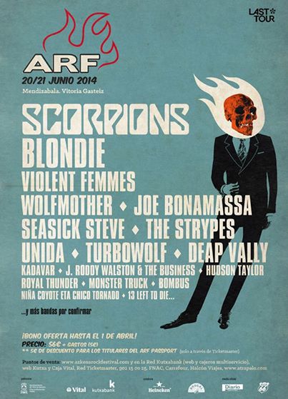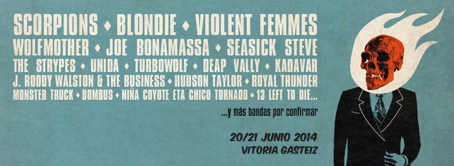 Azkena Rock Festival (ARF) da hoy a conocer nuevos nombres J. Roddy Walston and The Business, The Strypes, Deap Vally, Monster Truck y Hudson Taylor tras la incorporación de Scorpions hace unos días en la decimotercera edicion del festival que se celebra en Mendizabala, Vitoria los días 20 y 21 de junio de 2014.