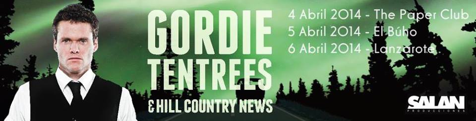 3.- ¿Se siente en deuda con algún músico o grupo? Fred Eaglesmith , John Prine y The Sadies , Estoy influenciado por todos ellos con seguridad. https://youtu.be/78lLRlZXY64 4.- ¿ Podrías decirme algún grupo actual que te resulte gratificante? Últimamente he estado escuchando a un montón de cantautores de Texas y a Charles Bradley, un gran cantante de R & B. Escucha a Gordie Tentress en “North Country Heart”. 5.- ¿Cuánto tiempo de vida tienen Gordie Tentrees y Hill Country News y cómo han evolucionado hacia el sonido actual? Hemos estado haciendo este tipo de música durante casi 15 años . Los chicos de la banda llevan conmigo 2 años. Tanto mi espectáculo, como mi sonido y mis discos han evolucionado en la forma que creo deberían hacerlo 6.- La gente dice que tu directo es espectacular. ¿Cómo lo enfocas? Eso es muy amable por parte de los que me han escuchado. Yo sólo trato de dar todo lo que llevo dentro.