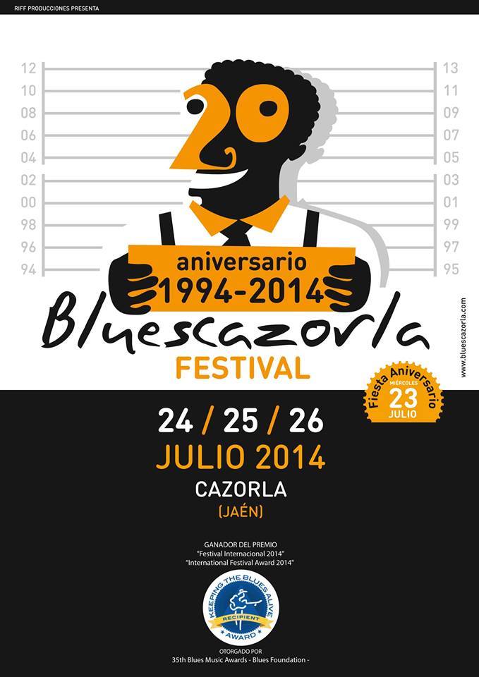 El festival de Blues jienense Bluescazorla Festival celebra este año su veinte aniversario y el premio al mejor festival de Blues del mundo otorgado por la fundación de Blues Foundation (los Grammys del Blues) hace unos meses en su trigésima quinta edición, del 24 al 26 de julio en la localidad de Cazorla.