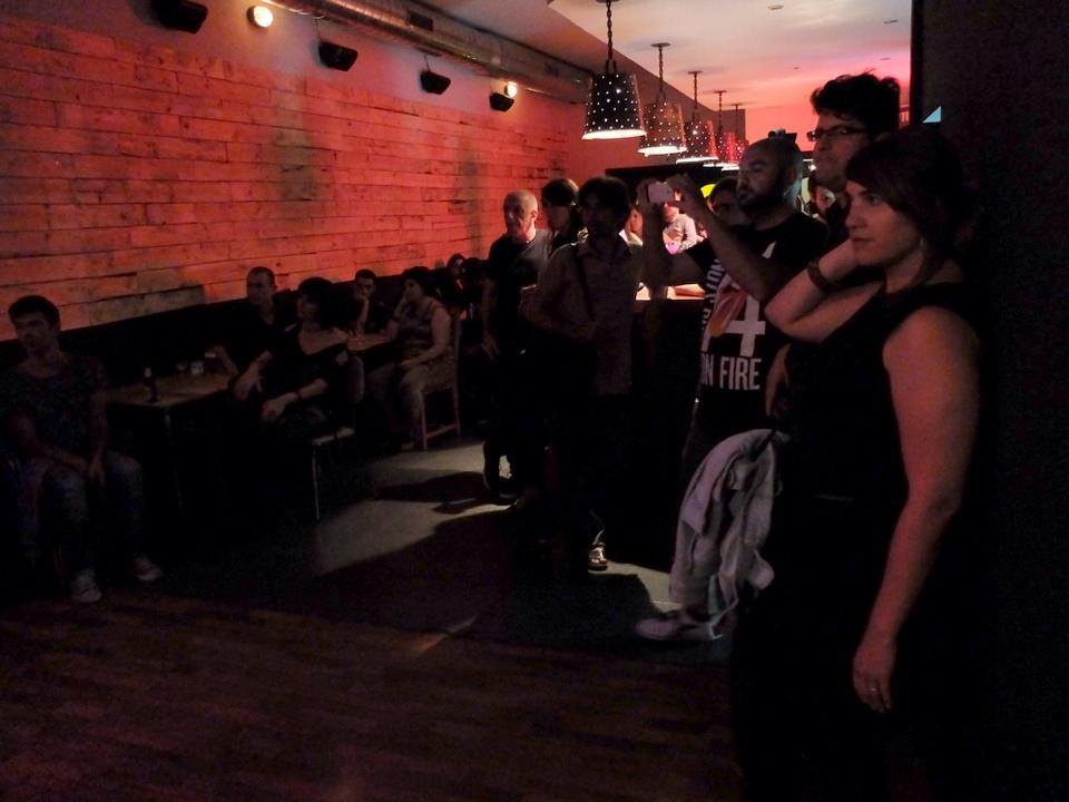El público respetuoso y feliz de tener una propuesta de calidad y diferente en la noche santacrucera, éramos unos 40, que paulatinamente fue llenándose cada vez más y más, en una sala, El Local que acoge perfectamente este tipo de formatos (esperamos mas propuestas como esta).