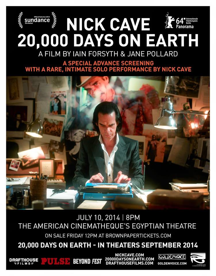 Nick Cave grabó el documental “20.000 Days on Earth” en secreto durante realización del último y decimoquinto disco de Nick Cave ad The Bad Seeds “Push the Sky Away” a principios del 2013.
