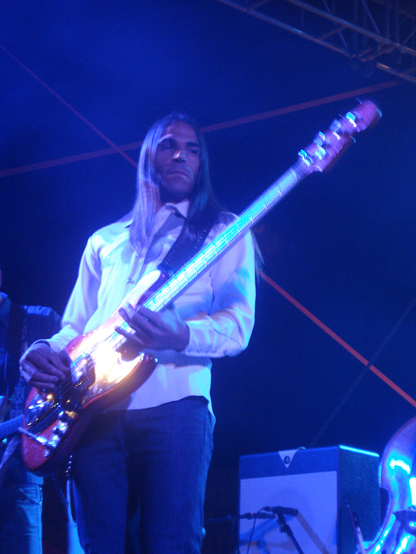 Con un aire alegre y desenfadado se presentaba ante un púbico rendido a sus pies,vocalizando su avejentada voz no tardó en colgarse su inseparable bajo y unirse al elenco de músicos que estaban en el escenario ejecutando de una forma magistral las cuatro cuerdas más rítmicas de la gala.