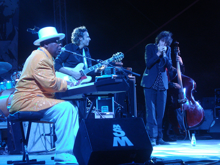Su voz fatigada enarbolaba los ánimos que crecían por momentos, sobre todo cuando se colgó la guitarra y se notó cierto cambio sustancial en la actuación. Dos efectivas guitarras, se combinaban para marcar y acompañar el ritmo de la batería y hacer los oportunos punteos llegando a estar sonando tres guitarras a la vez dejando protagonismo al abuelo del blues. La cara de felicidad entre el público aclaraba cualquier duda sobre la puesta en escena de Mr. Lazy Lester.