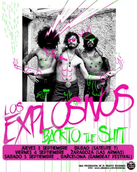 Los Explosivos, trío mejicano de Garage Punk Rock que comienza una gira por España de tres fechas el mes de septiembre denominada “Back to the Shit” de esta joven formación compuesta por Kasko a la batería y voz, Sabu Avilés a la guitarra y Tiba Explosivo a la guitarra, que pertenece al sello discográfico independiente norteamericano Get Hip Records, especializada en bandas retro de Garage Rock propiedad del grupo The Cynics.