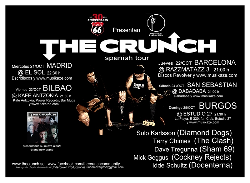 The Crunch regresan a España de gira en octubre para presentar su segundo álbum de estudio “Brand New Brand” de esta superbanda formada por Sören “Sulo” Karsson a la guitara y voz de Diamond Dogs, a la guitarra solista Mick Geggus de Cockney Rejects, al bajo Dave Tregunna de Sham 69, a los teclados Idde Schultz de Docenterna y Terry Chimes a la batería de los legendarios The Clash, que amablemente ha accedido a participar en la realización de esta entrevista.