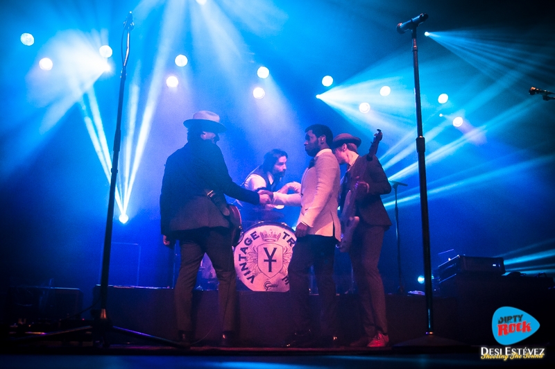 La abarrotada Razzmatazz y su público esperaba deseosa recibir jeringazos de adrenalina por parte de estos cuatro elegantes y distinguidos buscarruidos (troublemakers), recuerden que alguien dijo que “el blues tuvo un hijo y lo llamaron rock and roll y el gospel y el rhythm blues tuvieron otro que se llamó soul”, si además todo ésto lo metes en una centrifugadora, ahí tienes a los Vintage Trouble.