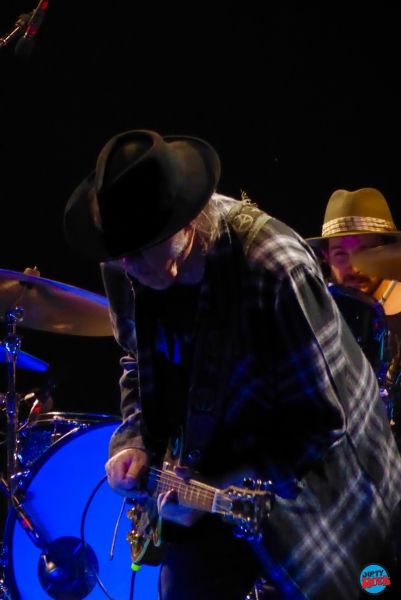 Comienza el show que es a lo que hemos venido y Neil aparece en solitario sobre el escenario. Lleva su clásico sombrero de cowboy negro, camisa de cuadros en tonos grises y debajo la camiseta con el logo de “Earth”, su nuevo álbum junto a The Promise Of The Real, la banda liderada por Lukas Wilson, hijo del archiconocido símbolo del Country Willie Nelson. “Earth” es un trabajo compuesto a base de temas, en su mayoría clásicos reivindicativos sobre la conciencia de los alimentos y la sostenibilidad del planeta en directo y remezclados con sonidos de la naturaleza.