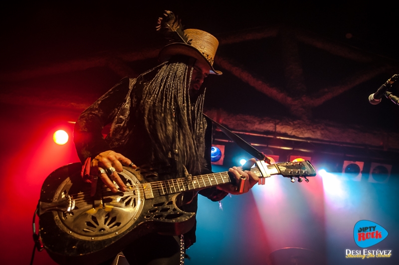 Un concierto de Eric Sardinas siempre sirve, entre otras cosas para coger fuerzas, por muchas veces que nos haya visitado. En esta ocasión lo hizo el pasado 20 de octubre en la sala Bóveda en Barcelona junto a su banda Big Motor, compuesta por Paul Loranger al bajo y Demi Lee Solorio a la batería en una nueva gira española durante el mes de octubre por parte de otro buscavidas del Blues de última hornada.